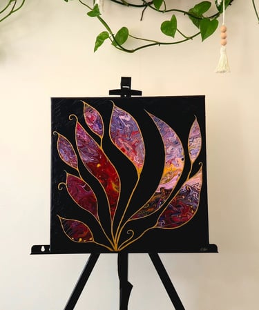 Plongez dans l’intensité de cette œuvre qui a débutée par un simple pouring qui ne me plaisait pas. La créativité aidant mon « Éclats de Nature » est né.